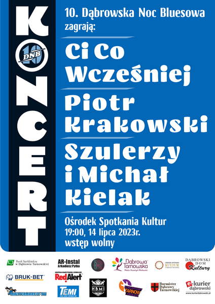 Zespół z 20-letnim bagażem doświadczeń jest finalistą III edycji popularnego programu telewizyjnego „Must be the Music – Tylko Muzyka”, Kielak to czołowy polski harmonijkarz, a także ex-członek legendarnej „Kasy Chorych”. Na scenie pojawi się też Piotr Krakowski – kompozytor, trębacz, multiinstrumentalista i producent muzyczny. Współpracował między innymi ze Stanisławem Sojką czy Andrzejem Grabowskim. X jubileuszowa Dąbrowska Noc Bluesowa rozpocznie się o godz.19:00. Jej organizatorami są: Dąbrowski Dom Kultury i Sebastian Lechowicz.