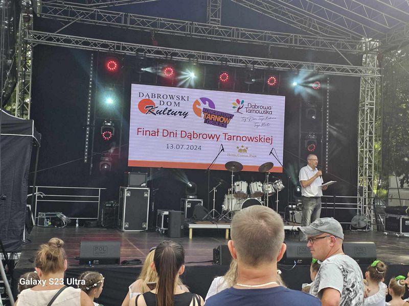 – Witamy wszystkich na tym naszym wspólnym święcie. Bardzo się cieszymy, że jest nas coraz więcej na naszym nowym miejscu, bo zazwyczaj był koncert na Sucharskiego, a teraz zmieniliśmy miejsce. Z daleka widzimy promenadę, skąd również dobrze widać scenę. Cieszymy się, że państwo jesteście z nami, bo organizatorzy, jak widzą uczestników wydarzeń, to są zadowoleni. Wysiłek po stronie samorządu duży w przygotowaniu naszego dorocznego święta. (…) Już teraz chcę podziękować panu dyrektorowi DDK, Pawłowi Chojnowskiemu, który organizuje praktycznie od zakończenia danego wydarzenia tę imprezę na kolejny rok i myśli o tym, jak Dni Dąbrowy w kolejnym roku będą przebiegać; i to jest duży wysiłek całego zespołu Domu Kultury, ale nie tylko, bo również samorządu i naszego budżetu. Cieszymy się, że dajemy sobie z tym wszystkim radę. Życzę dobrej zabawy dla wszystkich i pięknego, udanego lata, dobrych wakacji, dobrych urlopów, wszystkiego, co najlepsze dla wszystkich – podsumował ze sceny burmistrz Dąbrowy Tarnowskiej, Krzysztof Kaczmarski.