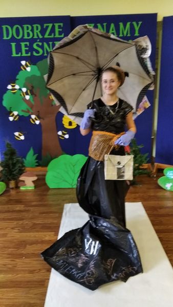 W tym samym czasie starsi uczniowie wraz z nauczycielami oraz członkiniami stowarzyszenia pod czujnym okiem przedstawiciela nadleśnictwa w Dąbrowie Tarnowskiej posadzili przed szkołą rośliny miododajne oraz zielone drzewa. Działanie to na pewno przyczyniło się do uwrażliwienia młodych ludzi na naturalne piękno i kształtowanie postawy proekologicznej. Uczniowie klas IV – VIII wykonali również piękne stroje z materiałów odpadowych, a efekty ich pracy podziwialiśmy podczas pokazu Eko Mody.