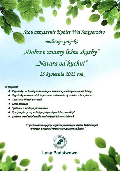Stowarzyszenie Kobiet Wsi Smęgorzów realizuje projekt „Dobrze znamy leśne skarby” w ramach ogólnopolskiego programu Lasów Państwowych „Natura od kuchni”.