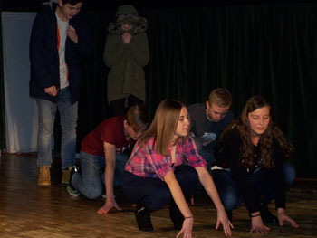 Na scenie Dąbrowskiego Domu Kultury, staraniem gospodarza i Małopolskiego Centrum Kultury „Sokół” w Nowym Sączu – Biura Organizacyjnego w Tarnowie (Ilona Stanaszek) odbyła się II tura zaplanowanych w tym roku szkolnym warsztatów teatralnych dla młodzieży z 2 grup (Gimnazjum nr 2 w Dąbrowie Tarnowskiej i Zespołu DDK).