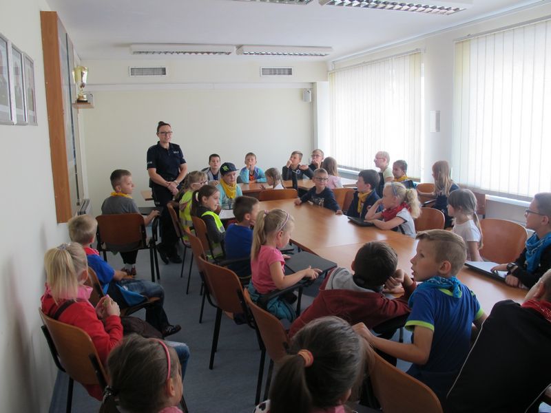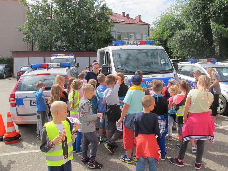 Dzieci z półkolonii letniej „Wakacyjne Rytmy” zorganizowanej przez Burmistrza Dąbrowy Tarnowskiej Krzysztofa Kaczmarskiego przy współpracy z Publiczną Szkołą Podstawową nr 2 w Dąbrowie Tarnowskiej w dniu 20 lipca br. odwiedziły policjantów z Komendy Powiatowej Policji w Dąbrowie Tarnowskiej.