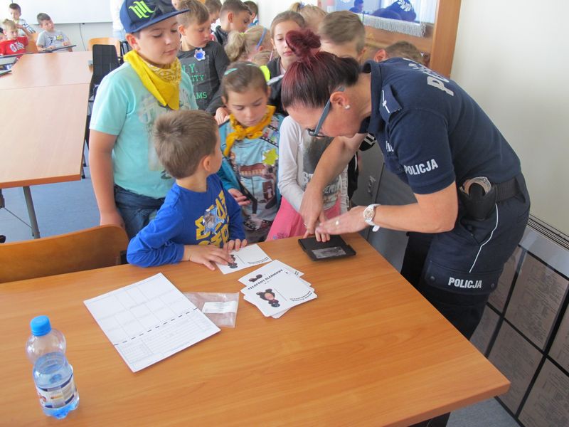 Każdy z uczestników krótkiej prelekcji miał możliwość wykonania własnych odcisków linii papilarnych.