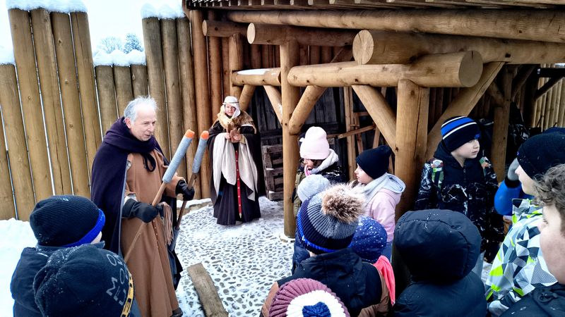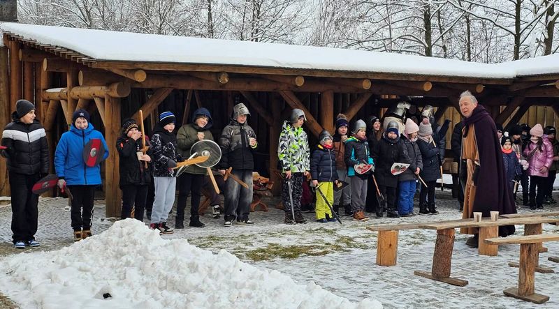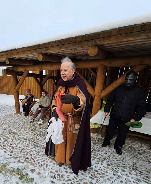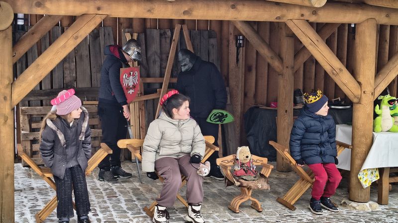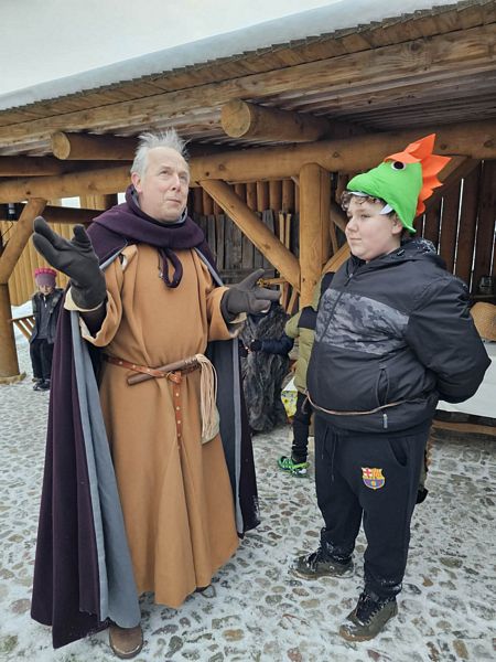 Tym razem taką szansę, ale blisko swojego domu, miały dzieci z Bolesławia w ramach „Ferii w bibliotece 2026”. Spektakl poprowadził, wcielając się w narratora i konferansjera, niezawodny grododzierżca, Wojciech Maniak, twórca Bractwa Rycerskiego Poczet Bagiennych z Wieżycy i autor scenariuszy do wszystkich spektakli wystawianych w krakowskim Barbakanie.