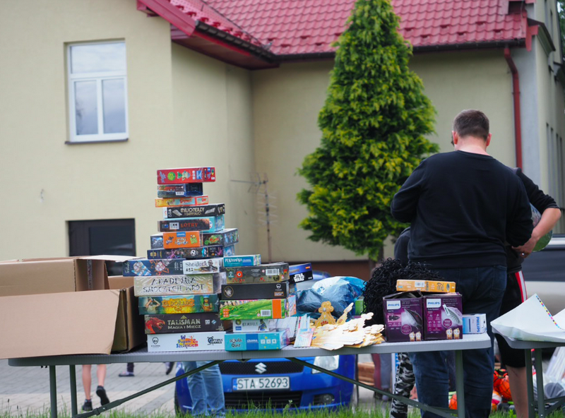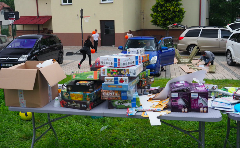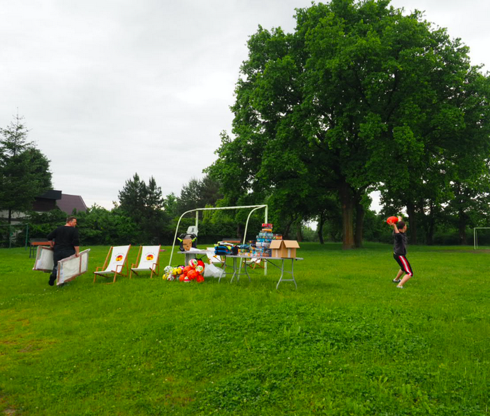 Były planszówki, była piłka. Słowem – bardzo miło spędzony dla nas czas we wspaniałym i radosnym towarzystwie wychowanków. Przekazaliśmy: Kosze stacjonarne do koszykówki streetball 2x Zestaw do siatkówki Zestaw do badmintona x2 (rozkładana siatka + 2 rakiety) Badminton Junior (2 rakiety mniejsze) Badminton (2 +4 ) 2x zestaw dodatkowych lotek do badmintona (24szt) Zestaw treningowy Turnball Gry planszowe x 42 Piłka nożna x 9 Piłka siatkowa x8 Piłka do koszykówki x5 Piłka do rugby x3 Pompka do piłek x2 2 zestawy baniek mydlanych 2 gumy do skakania Żelazko x2 Deska do prasowania, Basen ogrodowy 4,5m + chemia+ osłona+pływak+ zabawki basenowe 8szt, Leżaki ogrodowe x 6 Trampolina ogrodowa Hamak x 2 Stolik campingowy x2 Stolik piknikowy x3 Maszynka do strzyżenia Karimaty x 30 Frisbi x 8 Siatka na bramki x2 Siatki do zbierania piłek x2 Tak długa i imponująca lista nie byłaby możliwa dzięki zaangażowaniu dziesiątek ludzi dobrej woli, darczyńców i sponsorów. Wszystkim WAM razem i każdemu z osobną gorąco DZIĘKUJEMY! To, co udało się zrobić, stało się możliwe dzięki Waszemu wsparciu i ofiarności. Część z Was podpisała się imiennie, część pozostała anonimowa. Każdemu z WAS za każdą formę wsparcia i dobre słowo serdecznie dziękujemy. Mamy nadzieję, że przyszłości również będziemy mogli na Was liczyć!
