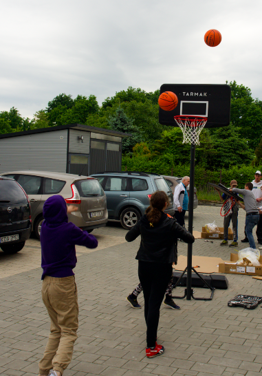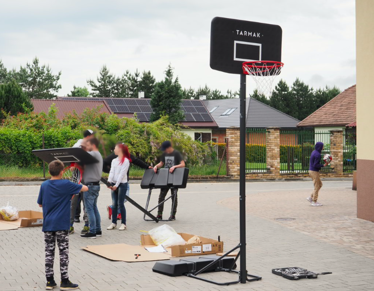 Przedstawiciele Stowarzyszenia Polska 2050 oraz wspierający sympatycy przekazali zgromadzone fanty bezpośrednio na ręce wychowanków Jednostki Wspierającej Rodzinę w Dąbrowie Tarnowskiej. Wspólnie z podopiecznymi placówki składaliśmy ławki piknikowe, boisko do siatkówki, kosze do streetball’a, graliśmy w badmintona, dziewczyny skakały w gumę.