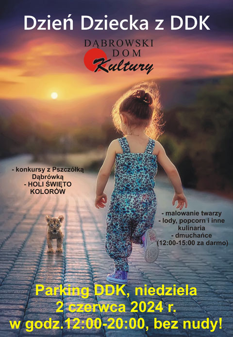 Druga odsłona to festyn na parkingu DDK w niedzielę 2 czerwca. W godz.12:00-15:00 będzie można korzystać z ustawionych tam darmowych dmuchańców, od godz.16:00 będzie akcja malowania twarzy przez animatorki, konkursy z nagrodami w wykonaniu Pszczółki Dąbrówki, a między 17:00 i 20:00 odbędzie się ulubiona zabawa dąbrowiaków małych i dużych – „Holi – święto kolorów”. Będą też lody, wata cukrowa, balony i zabawki.