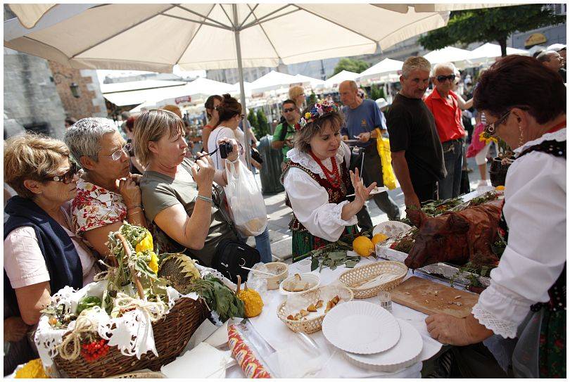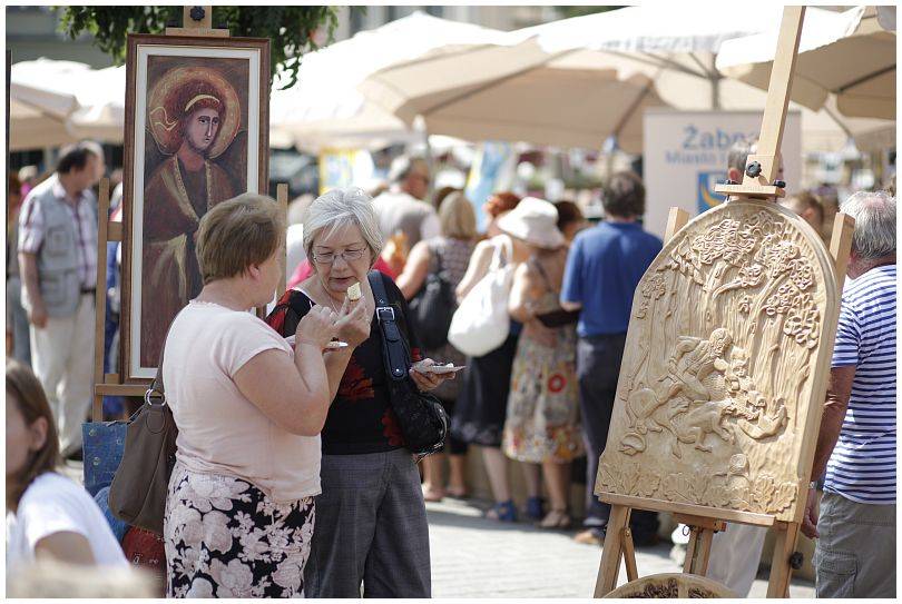 Podczas trwania występów wszyscy odwiedzający rynek mieli możliwość obejrzenia stoisk twórców z gminy Żabno. W Krakowie zaprezentowali się Ewa i Wojciech Kaczówkowie ze stoiskiem zdobienia ręcznego, Agnieszka Klich z malarstwem i ikonami, Adam Tomczyk z rzeźbami oraz stoisko z regionalnymi potrawami w wykonaniu Koła Gospodyń „U Tatara” z Siedliszowic. Szczególnie to ostatnie ze względu na rozdawane smakołyki cieszyło się nieustającym zainteresowaniem.