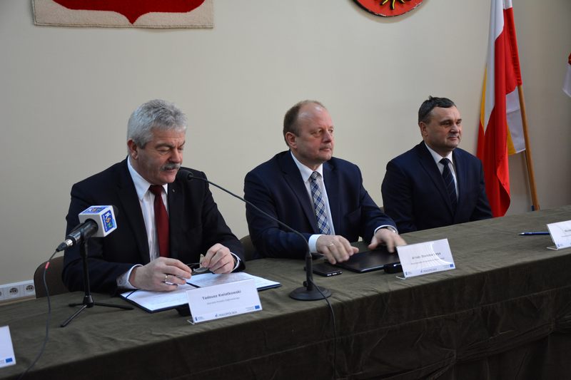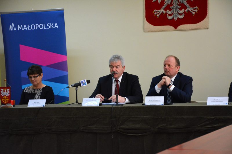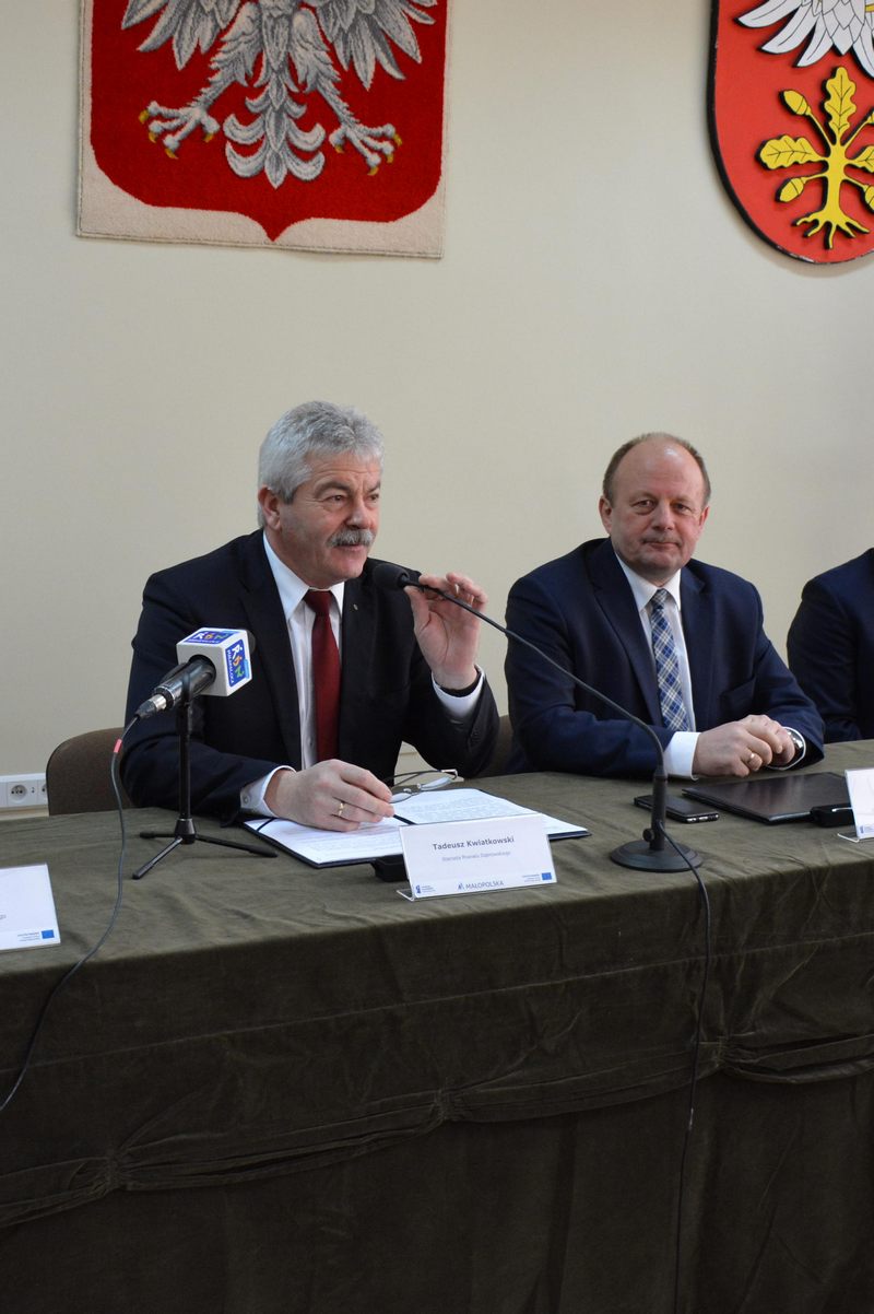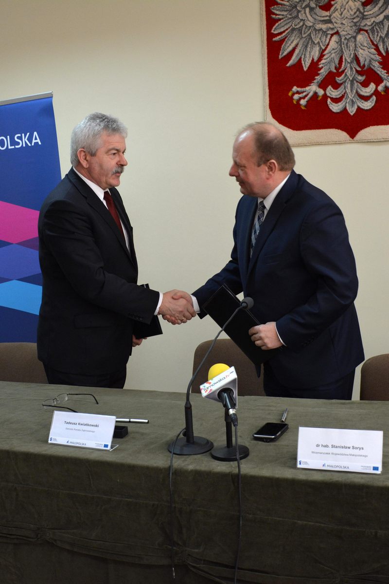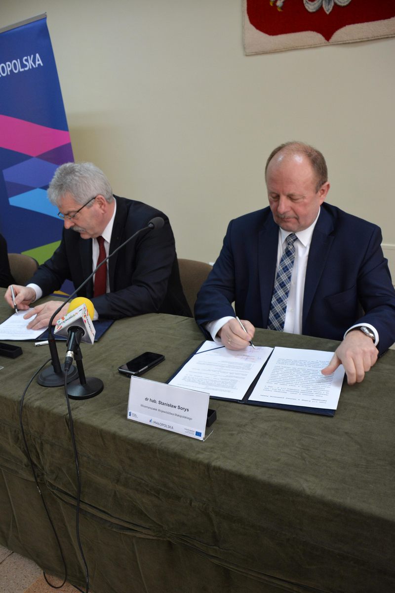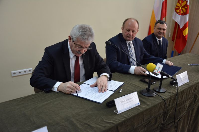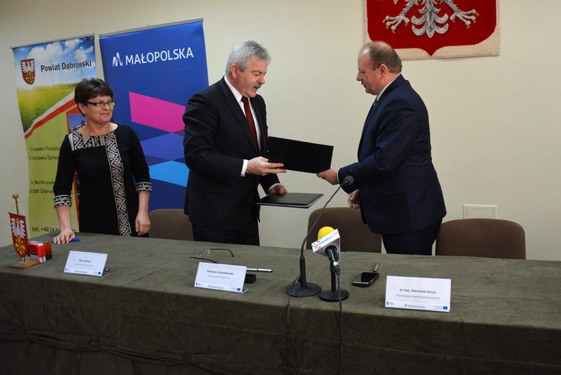 Umowę na inwestycję, o wartości ponad 6 mln zł, podpisali przedstawiciele samorządów: Stanisław Sorys wicemarszałek Małopolski, Tadeusz Kwiatkowski starosta dąbrowski, Marek Kopia wicestarosta oraz Maria Sztorc skarbnik Powiatu.