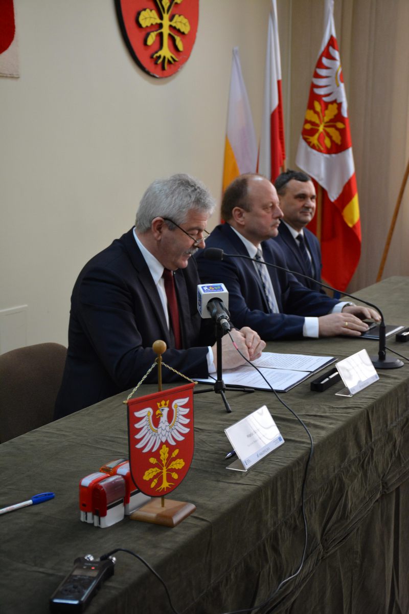 Starosta Tadeusz Kwiatkowski, rozpoczynając spotkanie podziękował wicemarszałkowi Stanisławowi Sorysowi, za duże wsparcie Urzędu Marszałkowskiego, dzięki któremu, mieszkańcy powiatu dąbrowskiego, instytucje, geodeci, rzeczoznawcy majątkowi, projektanci i inwestorzy zyskają powszechny dostęp do map i danych gromadzonych w zasobach geodezyjnych. Wyrażając wdzięczność, podkreślił, że wicemarszałek zawsze jest otwarty na pomoc i wspiera liczne projekty i inwestycje na rzecz rozwoju Powiśla. Gospodarz naszego powiatu omówił także projekt, na który podpisano umowę gwarantującą otrzymanie dofinansowania.