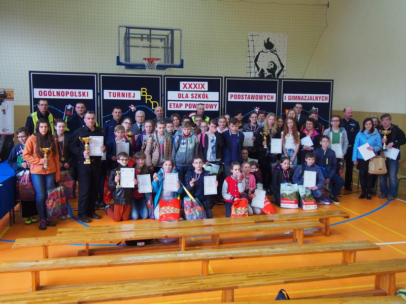 Nagrody dla uczestników turnieju wręczali: Krzysztof Kaczmarski Burmistrz Dąbrowy Tarnowskiej, insp. Andrzej Kupiec Komendant Powiatowy Policji w Dąbrowie Tarnowskiej, Anna Fido Dyrektor Publicznej Szkoły Podstawowej nr 2, Ferdynand Gawron starszy wizytator Kuratorium Oświaty w Tarnowie oraz przedstawiciel głównego sponsora nagród turnieju Rałał Orszulak z firmy Tankpol ze Szczucina.