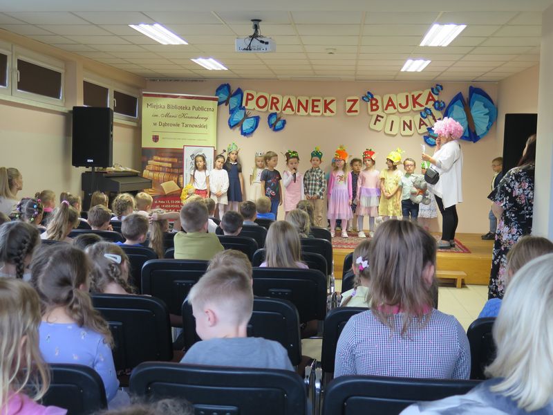 Ten finałowy „Poranek z Bajką” uświetniły recytacje i wokale, a nawet tańce zaprezentowane przez Grupę Teatralną „Chochliki” z Przedszkola nr 1 w Dąbrowie Tarnowskiej pod kierunkiem Barbary Nawój, która narracją wzbogaciła dziecięce popisy.