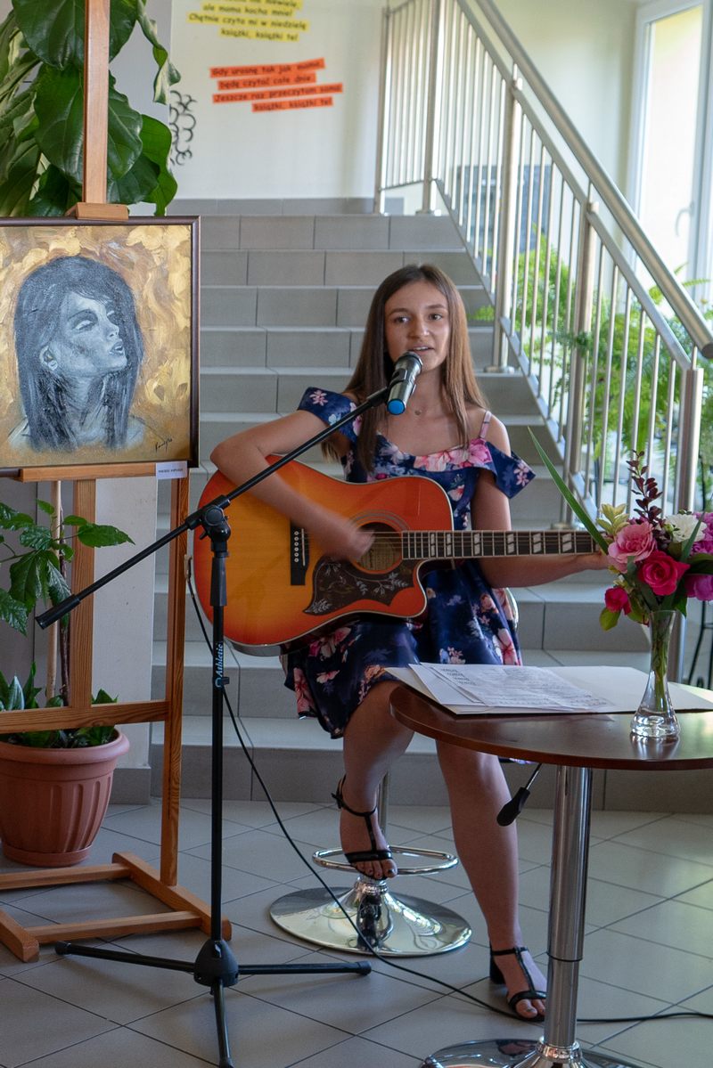 Uroczystość uświetnił śpiew i gra na gitarze elekroakustycznej Natalii Kumięgi, utalentowanej uczennicy Radłowskiej Szkoły Muzyki Rozrywkowej. Na finisaż przybyli rodzina i przyjaciele artystów oraz czytelnicy i sympatycy dąbrowskiej biblioteki. Był też czas na rozmowy z artystami, wymianę uwag dotyczących sztuki, a także na nietuzinkowe spędzenie popołudnia. Goście mieli okazję degustować fantastyczne przystawki i desery serwowane przez Mariusza Kumięgę. Wystawa została zaprezentowana jako 54. w ramach cyklu Artyści Powiśla Dąbrowskiego. Ekspozycja prac prezentowana jest od 1 kwietnia br. można ją oglądać do 15 czerwca br. w holu na parterze MBP w godzinach pracy biblioteki. Serdecznie zapraszamy.