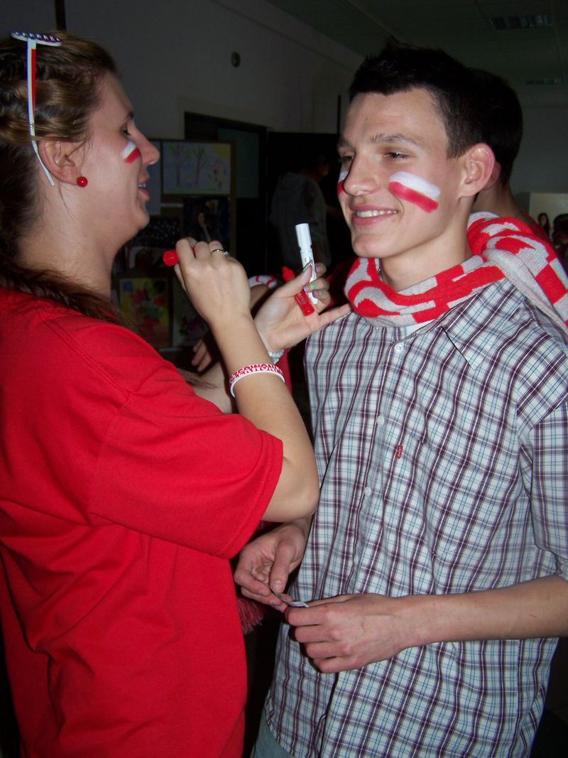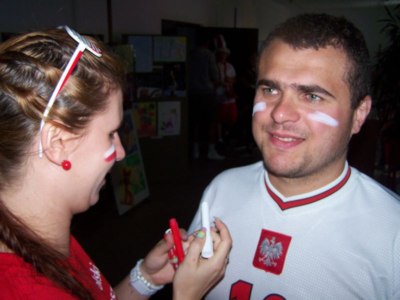 Cała sala odśpiewała hymn narodowy, a potem przez 90 minut gorąco dopingowała – jak na stadionie. Były flagi, czapeczki, koszulki, wuwuzele. Było malowanie twarzy w barwy narodowe. Po strzeleniu przez Roberta Lewandowskiego bramki dla biało-czerwonych kilku najbardziej rozentuzjazmowanych kibiców wbiegło nawet na scenę, żeby odtańczyć taniec radości i zrobić kilka kozłów!