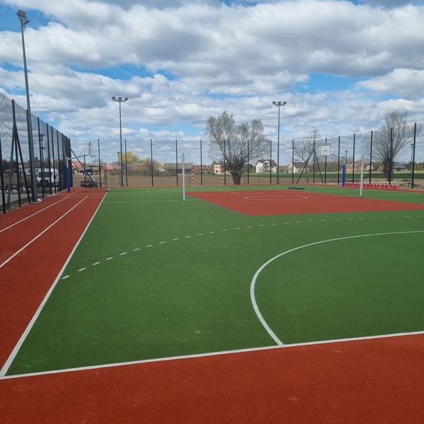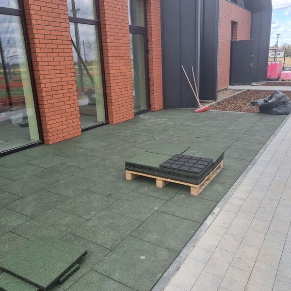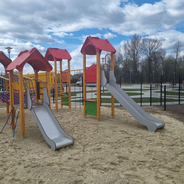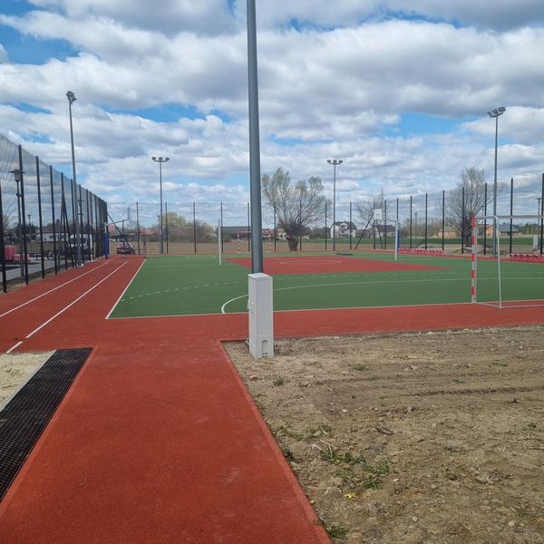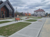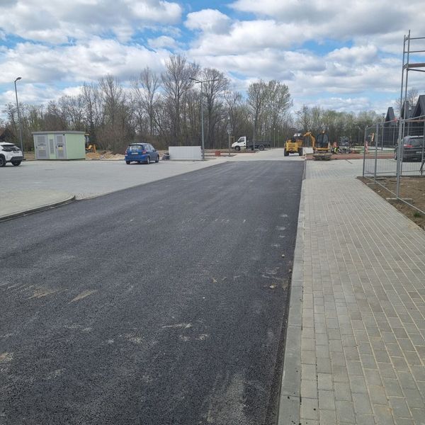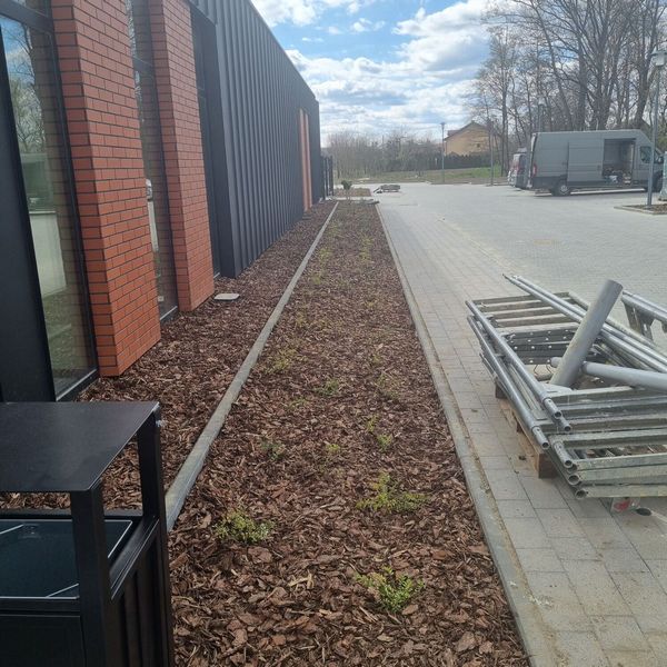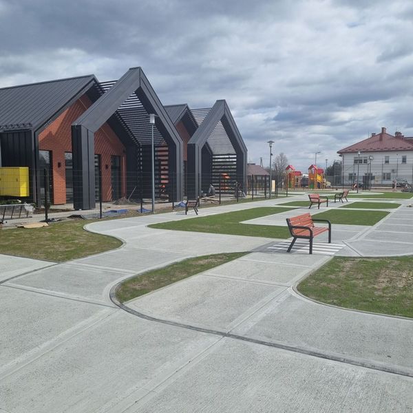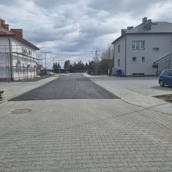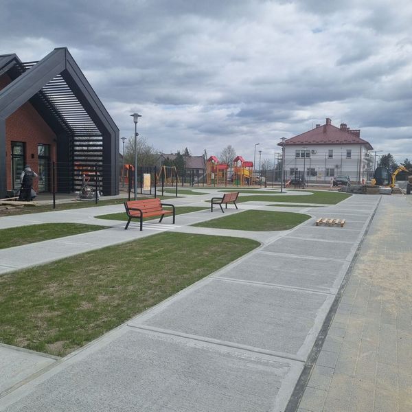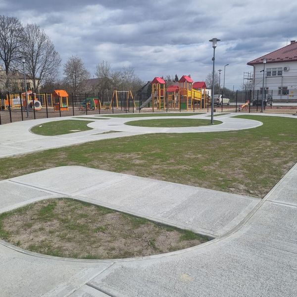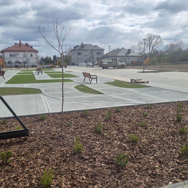 Na ukończeniu są również prace związane z zagospodarowanie terenu wokół budynku. Została wybudowana i przebudowana droga dojazdowa do budynku, wraz z miejscami postojowymi. Powstały 3 place zabaw dla dzieci, w tym 1 ogólnodostępny, oraz miasteczko ruchu drogowego i boisko wielofunkcyjne.