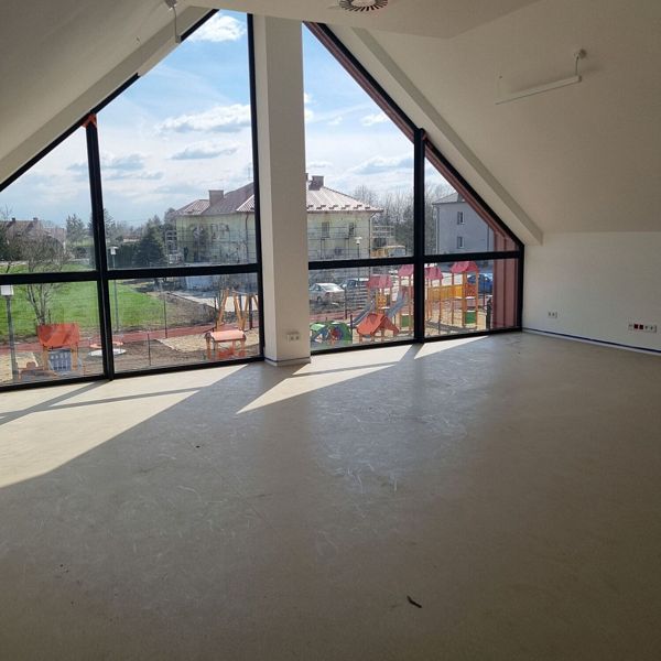 Obiekt wyposażony będzie w szatnię części przedszkolnej, szatnię części żłobkowej, zaplecza, salę wielofunkcyjną, sale zajęć, sale zabaw, kuchnię oraz pomieszczenia sypialne. Na piętrze budynku znajdować się będą wyłącznie zaplecza pracownicze (administracja i zaplecza socjalno – sanitarne), pomieszczenia magazynowe, techniczne i gabinet logopedyczny.