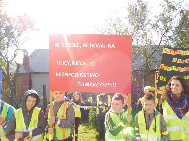 Pragniemy serdecznie podziękować Funkcjonariuszom z Komendy Powiatowej w Dąbrowie Tarnowskiej za uczestnictwo w przemarszu i czuwanie nad naszym bezpieczeństwem, Panu Michałowi Bartnik za wyposażenie uczniów w odblaski. Pani Dyrektor Magdalenie Woynarowskiej – Piaseckiej, nauczycielom, rodzicom, uczniom klas I-VII oraz przedszkolakom za zaangażowanie w przygotowania.