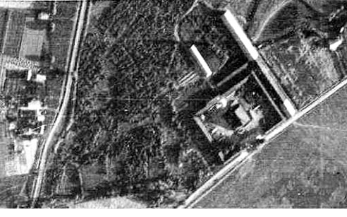 Cegielnia w Łęce Szczucińskiej i kompleks budynków gospodarczych w 1944 r. Niemieckie zdjęcie lotnicze [foropolska].