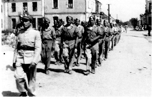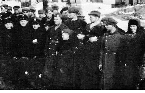 Kompania „świtowców” w strojach zimowych. Szósty z prawej S. Świerzb [DRŚ].