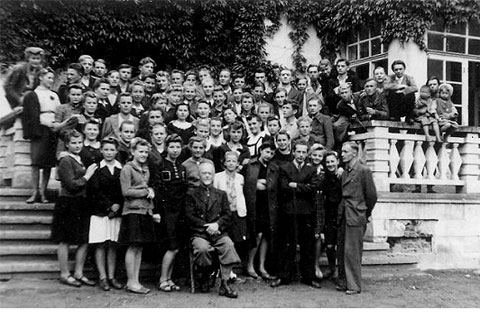 Uczniowie szkoły w Lubaszu (przed dworem Boguszów). W środku dyrektor Antoni Bigda [ANT]