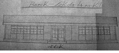Plan baraków szkolnych montowanych przez „Świt” w gminie Szczucin [ANT]