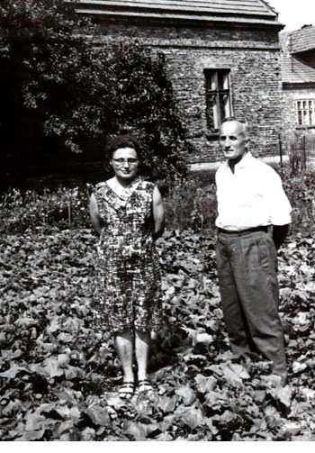 Zofia i Stanisław Świerzbowie przed domem w Bolesławiu – pocz. lat 60 [DRŚ]