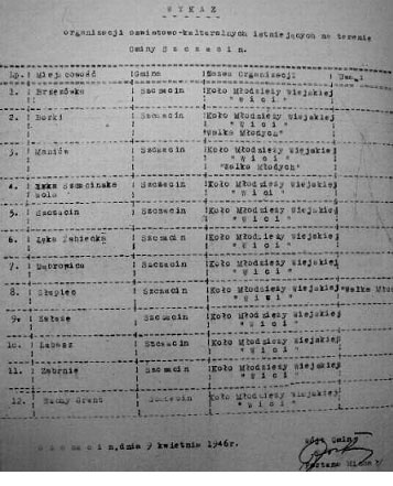 Wykaz organizacji młodzieżowych na terenie gminy Szczucin w dn. 2 IV 1946 r. [ANT]