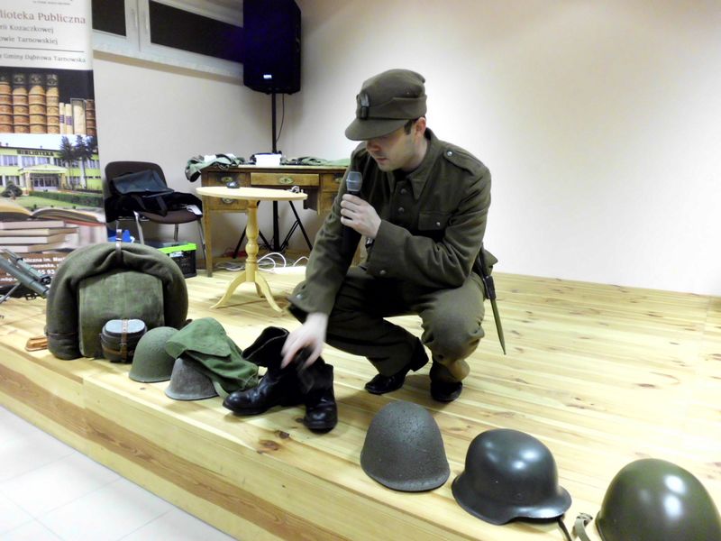 W sposób barwny i ciekawy przybliżył historię XVI Pułku Piechoty Ziemi Tarnowskiej, szczególnie skupiając się na żołnierzach tego okresu, ich umundurowaniu i wyposażeniu. Całość została wzbogacona prezentacją multimedialną i bogatą ilością mundurów, broni i eksponatów z tego okresu dziejów Polski. Prowadzący spotkanie dużo uwagi poświecił również działalności Grupy Rekonstrukcji Historycznej im. 16. Pułku Piechoty do której przynależy.