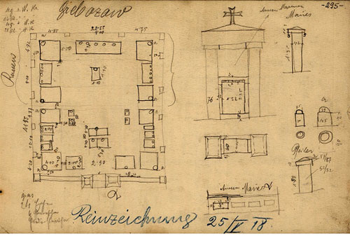 Szkic montażowy urządzeń cmentarza w Gręboszowie