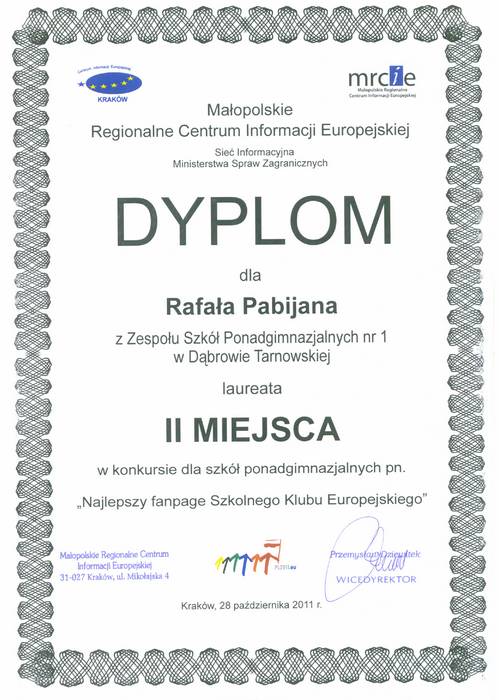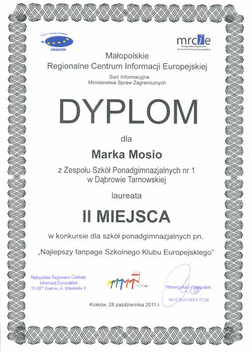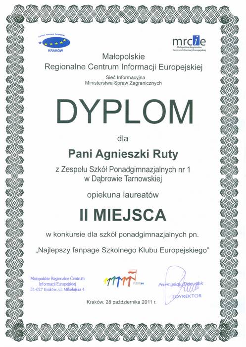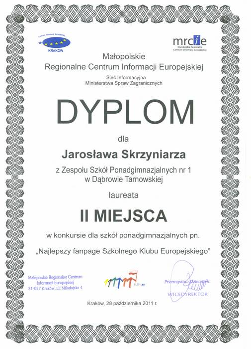 Został także rozstrzygnięty konkurs na „Najlepszy fanpage Szkolnego Klubu Europejskiego w serwisie Facebook”, w którym Zespół Szkół Ponadgimnazjalnych nr 1 w Dąbrowie Tarnowskiej zajął II miejsce.