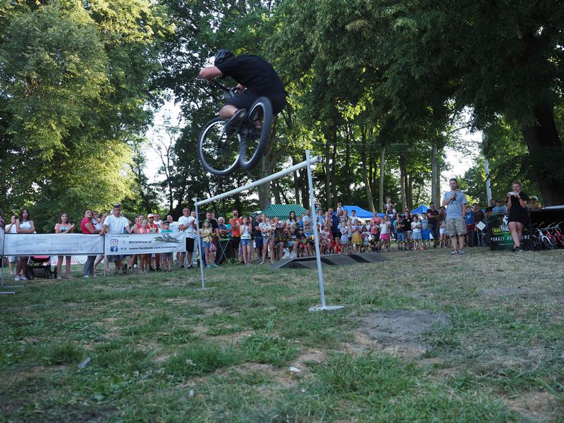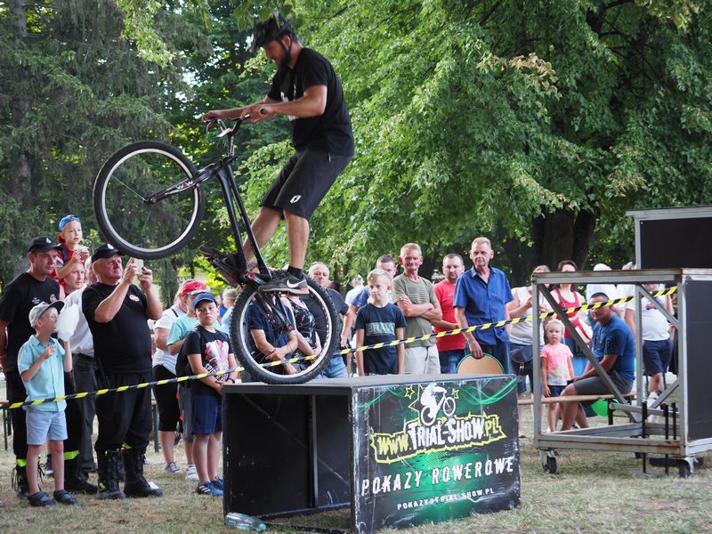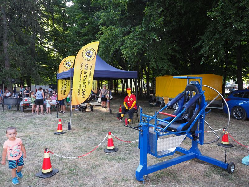 Myślę, że tę imprezę można podzielić na kilka aspektów: pierwsze to jest ten najważniejszy, ratowniczy – pokazy sprzętu ratowniczego, konkursy dla dzieci, dla młodzieży o bezpieczeństwie. Drugi sektor to sport – pokazy rowerowe. Turystyka rowerowa stała się bardzo popularna również w powiecie dąbrowskim. Mamy tu wicemistrza Polski w trialu rowerowym (II wicemistrza Polski 2019 r. w trialu rowerowym, Łukasza Kowala – red). Jest mistrz Polski w cyclocrossie z tego roku, Mirek Bieniasz. Kolejny sektor, to – jak poprzedniego dnia – pokazy pojazdów zabytkowych. Dzień wcześniej odbył się IV zlot, teraz mamy jego kontynuację. Będą też występy grup tanecznych, stoiska wystawowe m.in. Kół Gospsodyń Wiejskich, gdzie mamy też bardzo ważne wydarzenie – w zasadzie projekt Lasów Państwowych dotyczący „Natury od kuchni” i tutaj Koło Gospodyń Wiejskich z Nieczajnej przygotowało dary lasu, jakimi są jagody. Panie przygotowały tysiąc jagodzianek, którymi będą częstować mieszkańców powiatu dąbrowskiego, uczestników tej imprezy. Mamy symulatory dachowania, autogogle, wirtualną jazdę. Będzie szereg konkursów dla dzieci, takich o charakterze zabawowym, dotyczących bezpieczeństwa w ruchu drogowym, wiedzy o ruchu drogowym, o przepisach ruchu drogowego – mówił starosta dąbrowski, Lesław Wieczorek.