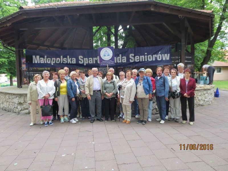 Słuchacze Stowarzyszenia Uniwersytet Trzeciego Wieku przy Dąbrowskim Domu Kultury na zaproszenie Elżbiety Achinger – Prezes Stowarzyszenia Wielicki Uniwersytet Trzeciego Wieku, w dniu 11.06.2016 r. wzięli udział w III Małopolskiej Spartakiadzie Seniorów, która odbyła się w Niepołomicach.