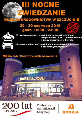 III NOCNE ZWIEDZANIE MUZEUM DROGOWNICTWA – Data: 29-30 czerwca 2019 r. Godziny: 15.00 – 23.00