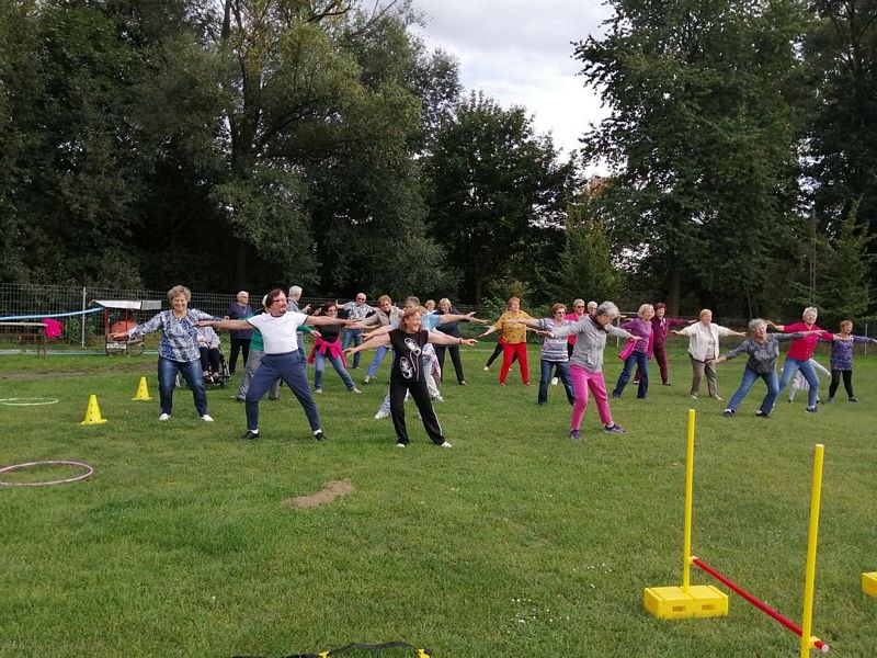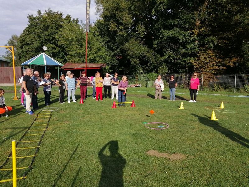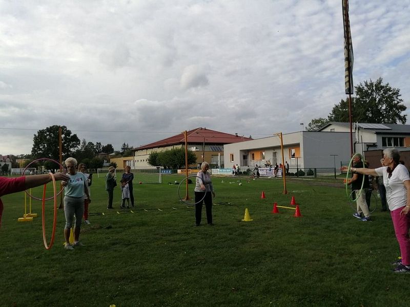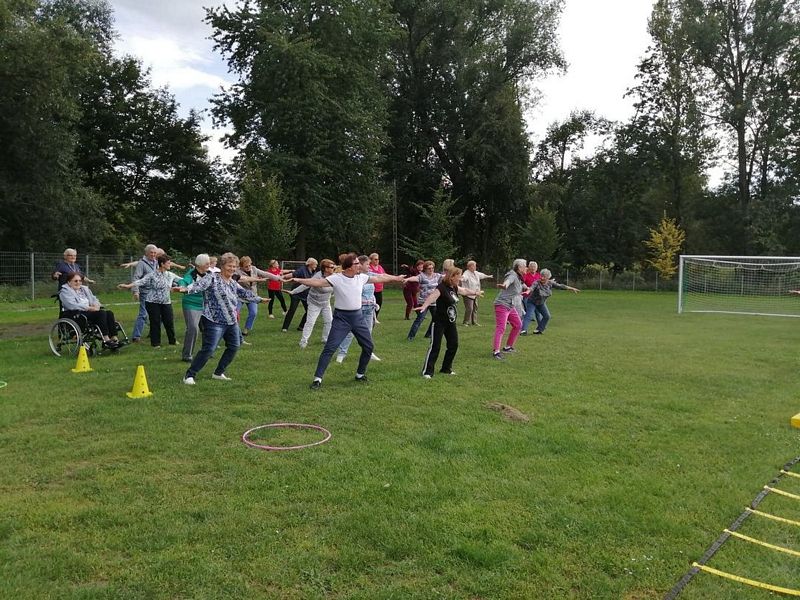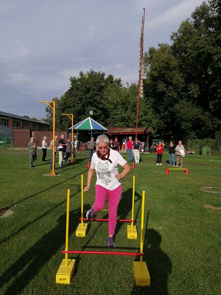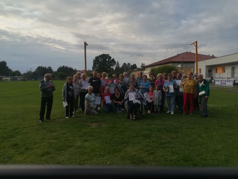 W pogodne wrześniowe popołudnie na stadionie MLKS „Dąbrovia” ponad 30-osobowa grupa członków dąbrowskiego UTW – po krótkiej rozgrzewce – rywalizowała w pięciu sportowych konkurencjach: bieg na 60m., zręcznościowy tor przeszkód, rzut do celu, hula-hoop i skakanka.