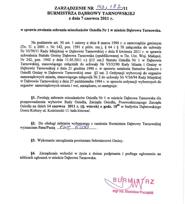 W związku z licznymi prośbami naszych Czytelników podajemy zamieszczoną na oficjalnej stronie Urzędu Miasta informację dotyczącą zebrania Mieszkańców Osiedla nr 1 w Dąbrowie Tarnowskiej.