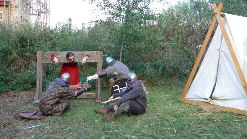 Interaktywna obserwacja życia obozowego – przyrządzania posiłków, wytwarzania wyrobów rzemieślniczych, treningów sprawnościowych w mieczu, łuku czy zapasach miała wyrobić właściwe pojęcie o tamtych czasach. Wszystkiego można było spróbować – największym powodzeniem cieszyła się strzelnica łucznicza, gdzie ustawiały się długie kolejki dzieci i młodzieży, a każdego symbolicznie nagradzano za odwagę drobnymi upominkiem. Na strzelnicy od czasu do czasu rozlegały się też wystrzały z hakownicy, której załadunek, zasada działania i rola na polu walki były tematem oddzielnych zajęć. Po tych wszystkich wrażeniach można było oprócz degustacji średniowiecznych potraw przygotowywanych cały czas w obozie, własnoręcznie opiec sobie nad ogniskiem kiełbaskę.