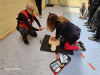 Ratownicy medyczni szkolili młodzież, opiekunów i osoby chętne, które pojawiły się w hali, z udzielania pierwszej pomocy przedmedycznej na fantomach dorosłych i dzieci.