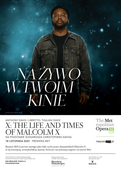 Baryton Will Liverman, który podbił serca widzów i krytyków występem w Fire Shut Up in My Bones Terence’a Blancharda, powraca na scenę Met w głównej roli. Partnerują mu sopranistka Leah Hawkins jako matka Malcolma, Louise, mezzosopranistka Raehann Bryce-Davis jako siostra Ella, bas-baryton Michael Sumuel jako brat Reginald oraz tenor Victor Ryan Robertson jako lider Narodu Islamu, charyzmatyczny Elijah Muhammad. Jak zwykle doskonałą orkiestrę Met poprowadzi Maestro Kazem Abdullah. Przed nami wybitna i złożona muzyczna uczta z bogatą, jazzową nutą. jej pierwszej operze Anthony Davis muzycznie interpretuje życie ikony ruchu na rzecz praw obywatelskich. Zamiast tłumaczyć czy ubóstwiać charyzmatyczną jednostkę, kompozytor skupia się głównie na jej wewnętrznej przemianie.