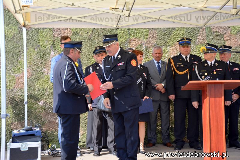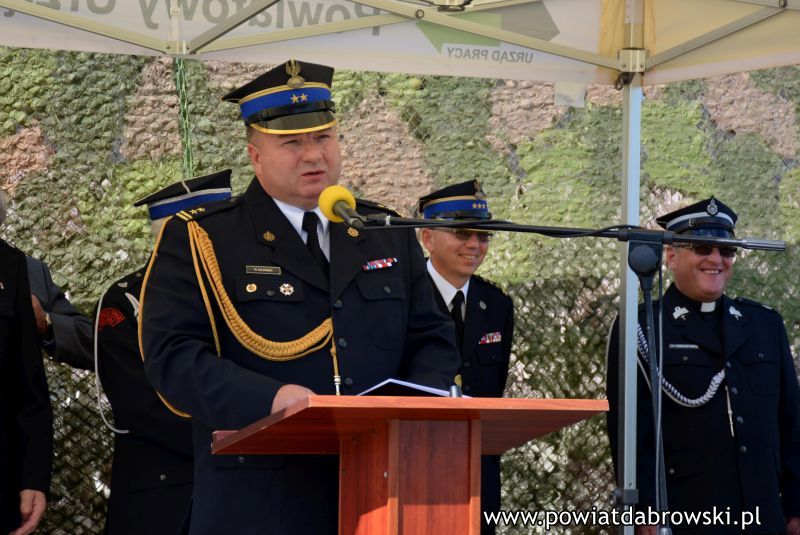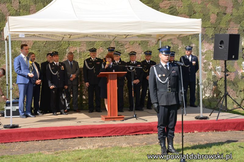 Głos podczas uroczystości zabrał także bryg. Robert Kłósek Komendant Powiatowy PSP w Dąbrowie Tarnowskiej. Przekazując gratulacje i życzenia dla druhów, złożył na ręce Prezesa OSP w Ujściu Jezuickim adres okolicznościowy.
