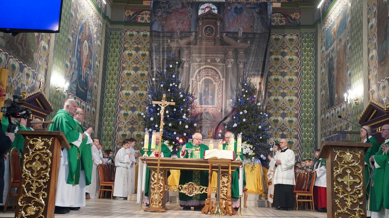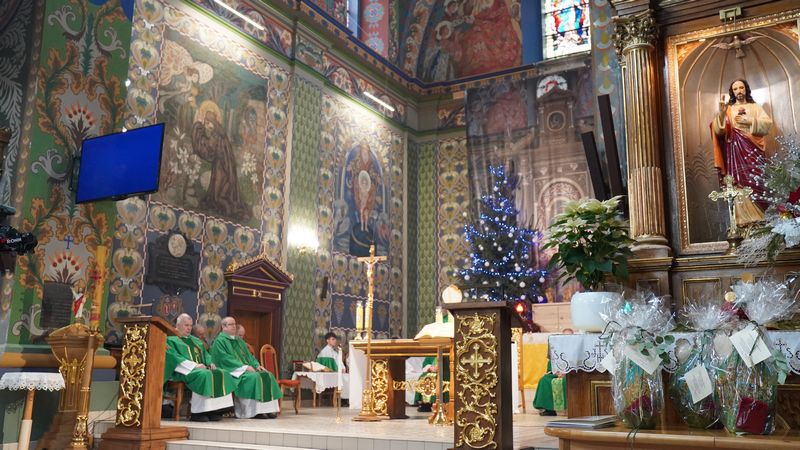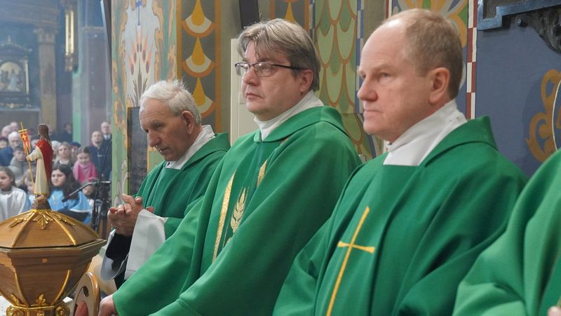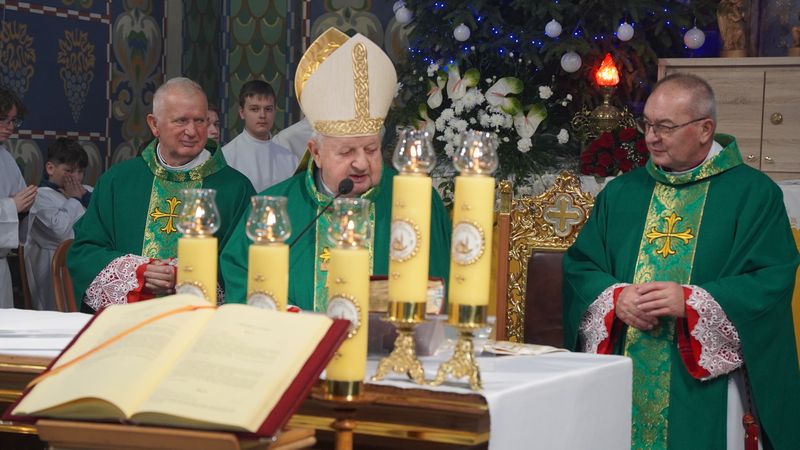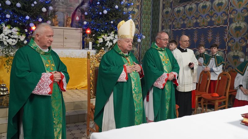Uroczystości rozpoczęły się w kościele parafialnym, gdzie Jego Eminencja, w asyście proboszcza, ks. Zygmunta Warzechy, oraz licznie zgromadzonego duchowieństwa, poświęcił odnowioną polichromię w prezbiterium.