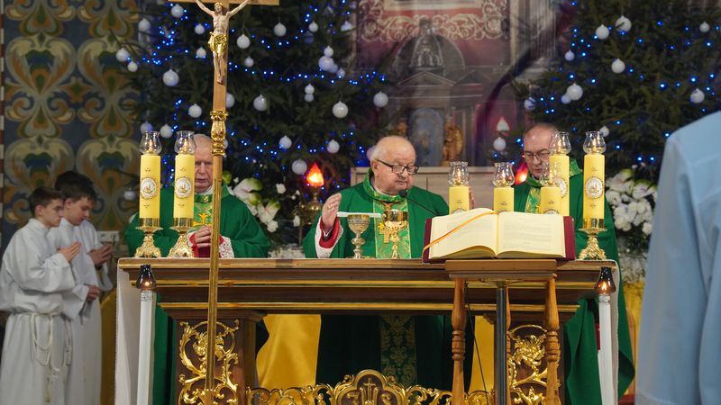 Następnie Ksiądz Kardynał Stanisław Dziwisz przewodniczył uroczystej Mszy Świętej jubileuszowej. W wygłoszonym Słowie Bożym, nawiązując do bogatej, 700-letniej historii, podkreślał znaczenie wiary jako fundamentu życia wspólnoty oraz źródła jej tożsamości i siły na przestrzeni wieków.