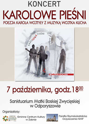 Gminne Centrum Kultury w Żabnie zaprasza na koncert Karolowe pieśni czyli poezja Karola Wojtyły z muzyką Wojtka Klicha.