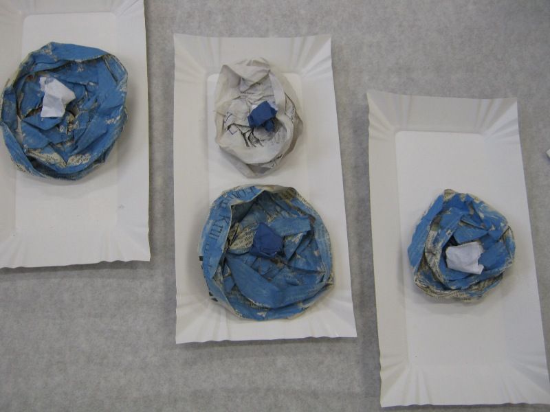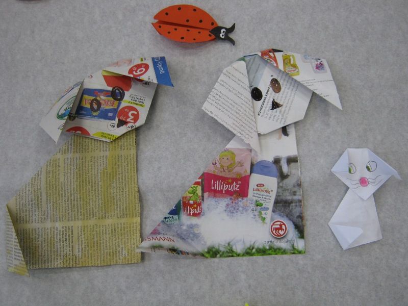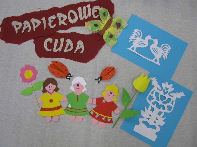 od wycinanek po pieczątki, powstałe tym razem wyłącznie z różnego rodzaju papieru: bibuła, karton, papier z opakowań, tektura itp.