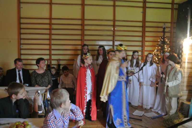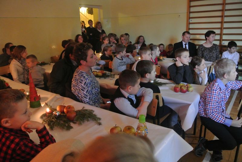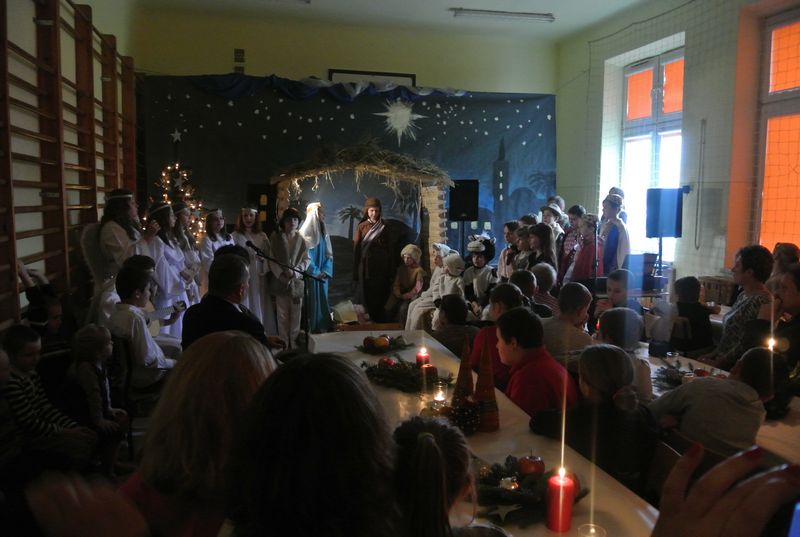 Dzieci w przepięknych strojach występowały przed swoimi rodzicami, nauczycielami, a także przed kolegami szkolnymi. Na świątecznie przystrojonych stołach paliły się świeczki. Salę zdobiła dekoracja przedstawiająca Betlejem i rozgwieżdżone niebo, na jej tle znajdowała się szopka, żłóbek i sianko.
