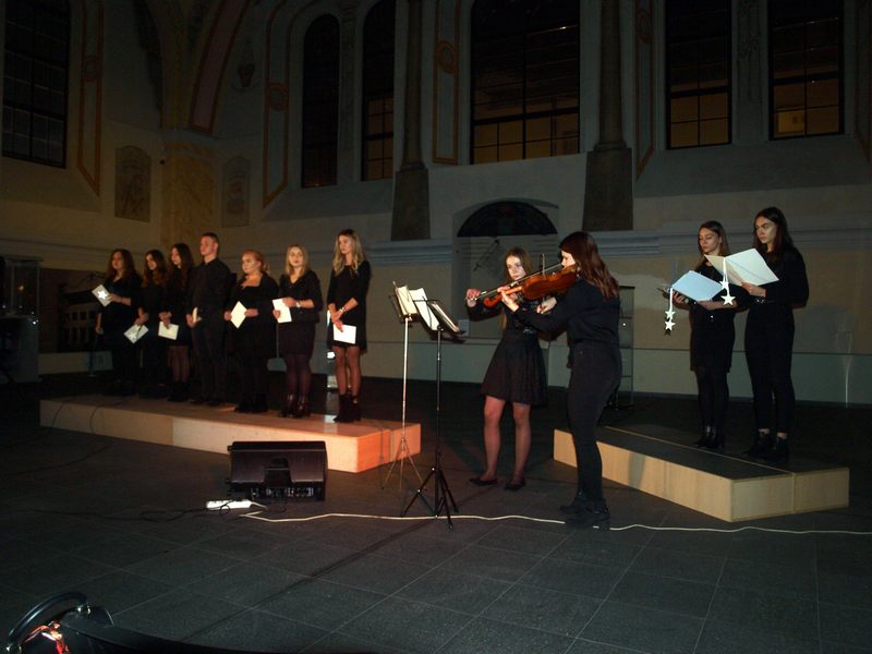 W tym noworocznym muzykowaniu – w pięknym wnętrzu byłej synagogi – uczestniczyli słuchacze UTW a także zainteresowani tym wydarzeniem mieszkańcy miasta. Zgromadzona publiczność wysłuchała ciekawych aranżacji przygotowanych pod kierunkiem Anny Zarzyckiej – nauczycielki obdarzonej pięknym głosem, która z młodzieżą zaśpiewała kilka kolęd.