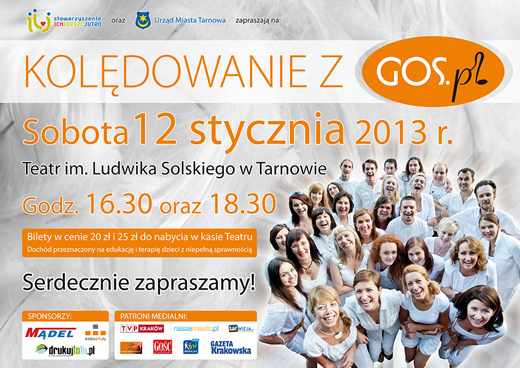 Tradycyjne polskie kolędy, pastorałki oraz utwory świąteczne w ciekawych aranżacjach, a także utwory z nowego repertuaru tarnowskiego chóru Gos.pl zabrzmią w Teatrze im. Ludwika Solskiego w Tarnowie w sobotę, 12 stycznia 2013 r.