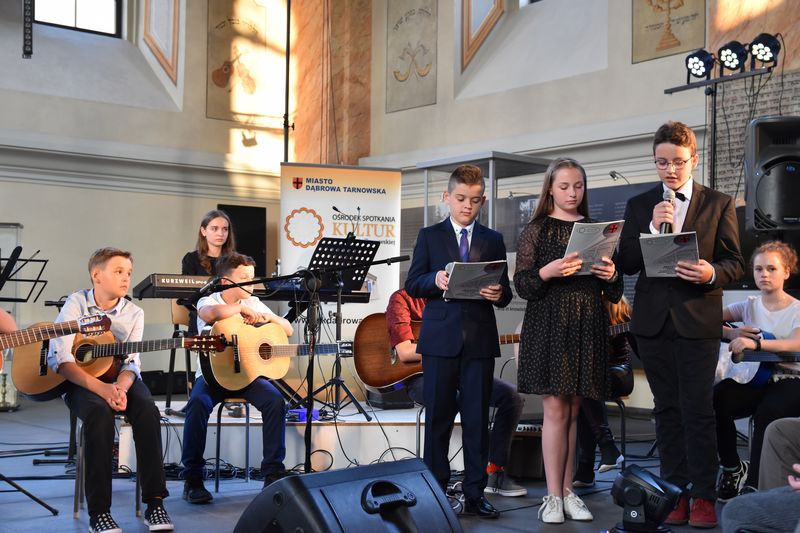 Imprezę prowadzili z dużą swobodą dziecięcy konferansjerzy a zarazem recytatorzy: Emilia Kmieć, Hubert Lichorobiec i Patryk Marek (uczniowie Szkoły Podstawowej nr 1 w Dąbrowie Tarnowskiej).