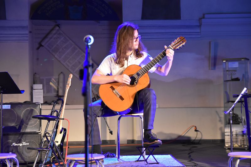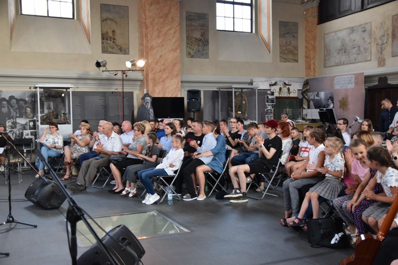 „Widok z ziarnkiem piasku” w wykonaniu uczniów i absolwentów szkółki muzycznej DDK – zdolnych i pełnych pasji instrumentalistów (gitara, pianino, zespół muzyczny) oraz wokalistek w połączeniu z wybranymi tekstami poetyckimi Wisławy Szymborskiej i w magicznej aurze świateł oraz niesamowitego wnętrza dąbrowskiej synagogi wypełnił piątkowy wieczór 25 czerwca.