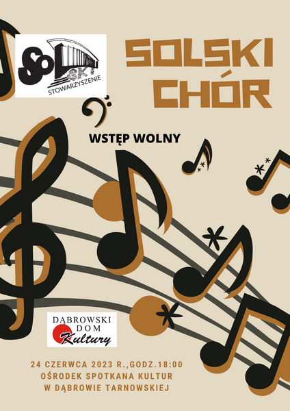 Sobotni wieczór należeć będzie do miłośników muzyki chóralnej. 24 czerwca o godz.18:00 w urokliwym wnętrzu dawnej Sali Modłów dąbrowskiej synagogi wystąpi znany i lubiany chór SOLski z Tarnowa. Chór przygotowuje na tę okazję specjalny repertuar, dopasowany stylistycznie i tematycznie do niezwykłego miejsca, jakim jest dla muzyków i melomanów Ośrodek Spotkania Kultur.