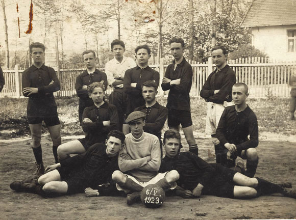 Zdjęcie to zostało przekazane 21.01.1965 roku zarządowi klubu przez Władysława Pleusia z Krakowa, a fotografię znalazł w prywatnym archiwum. Sam ofiarodawca w latach 1921-1927 pracował w zarządzie SKS Dąbrovia. Wiemy, że na zdjęciu znajdują się: Eugeniusz Śliwa, Leon Lewenstark, Wacław Szpak, Wiktor Bernal, Mieczysław Guzik, Julian Sieroń i prawdopodobnie bracia Chornbergerowie.